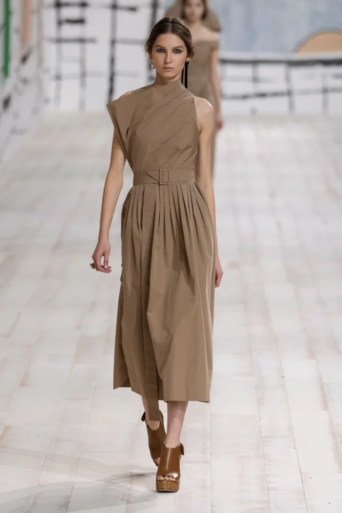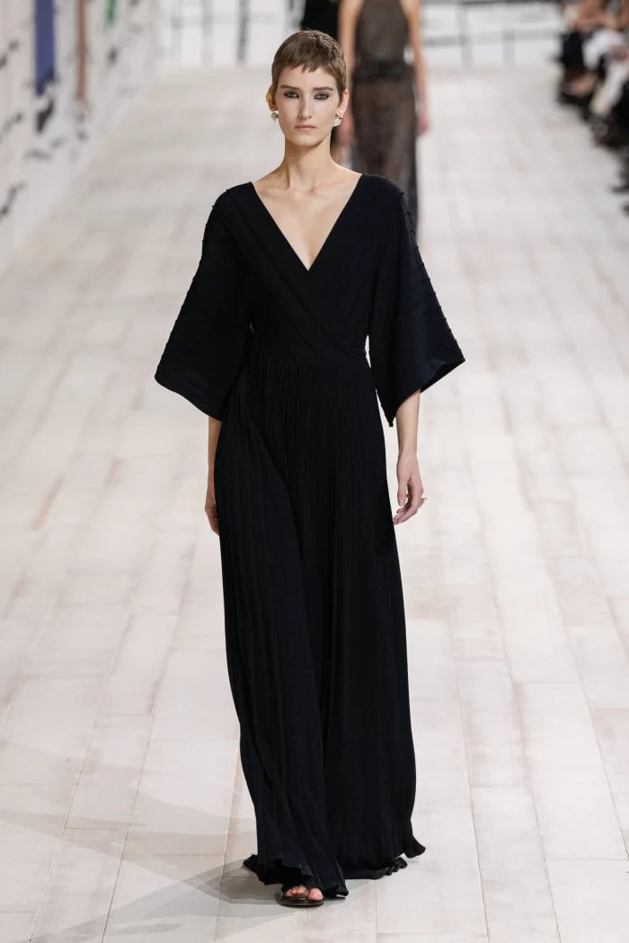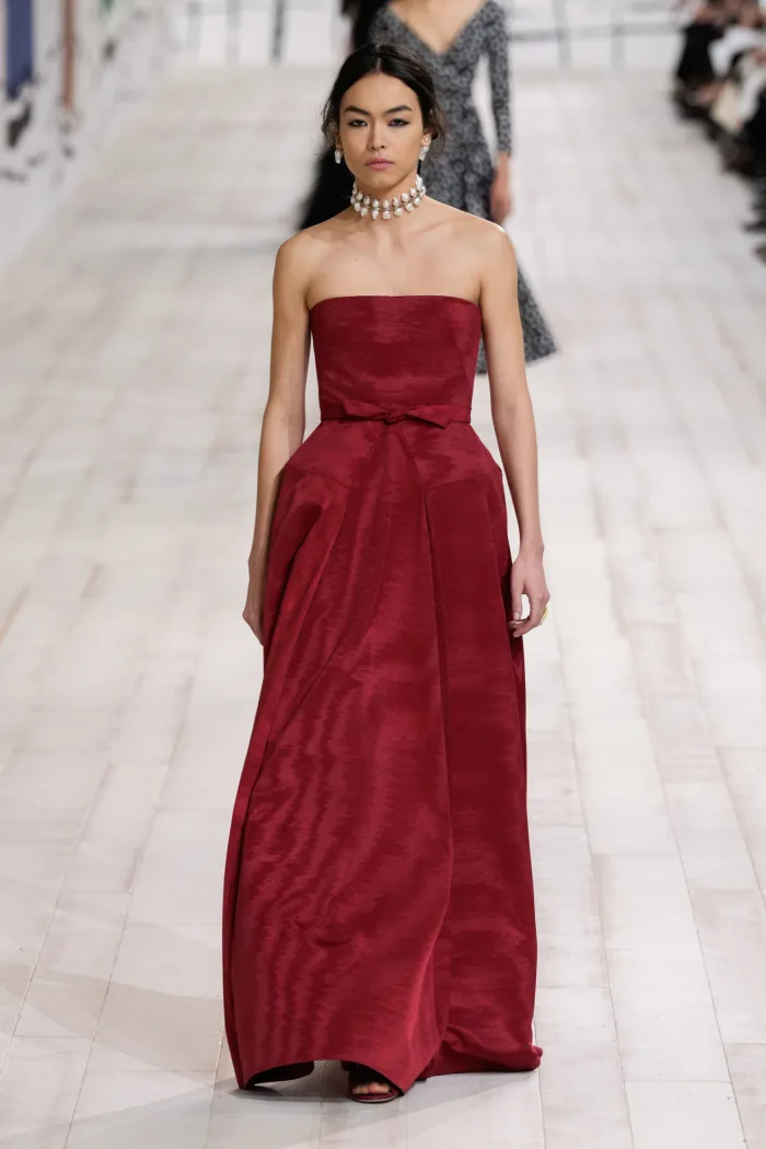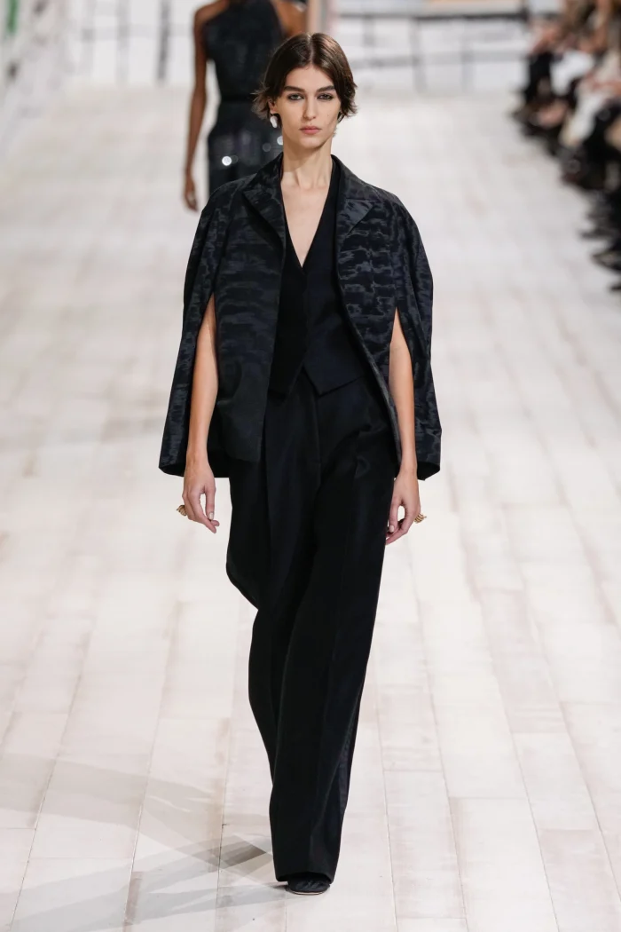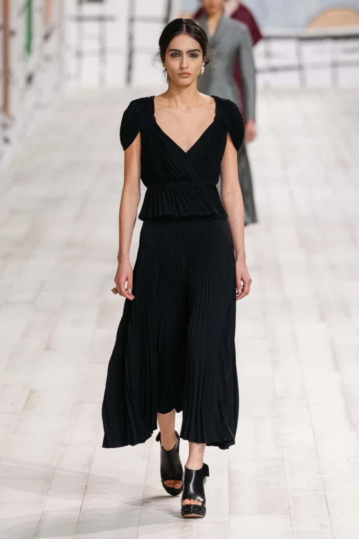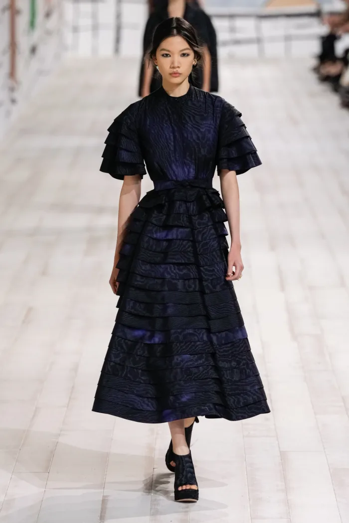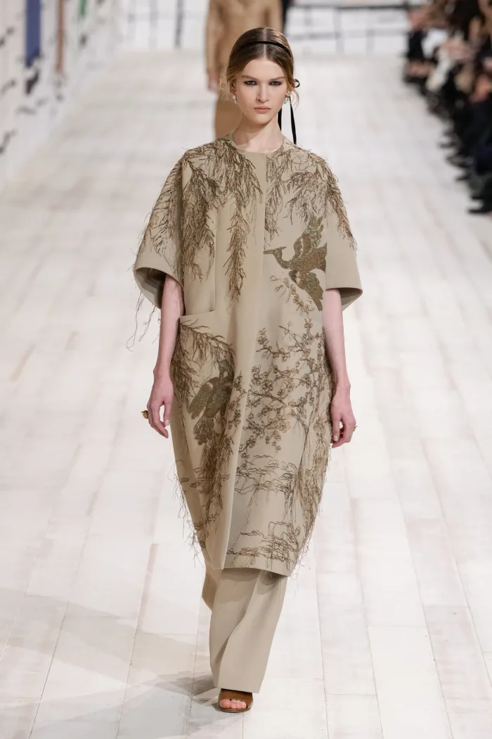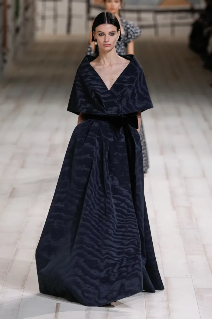 The collection opened with an unconventional, surreal experience, featuring massive dresses towering 15 feet high, amplified by the haunting sounds of Jerskin Fendrix's soundtrack for Yorgos Lanthimos's latest film, "Poor Things." But despite its otherworldly spectacle, Chiuri's collection focuses on practicality and wearability.