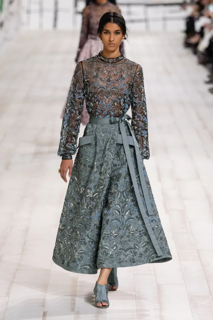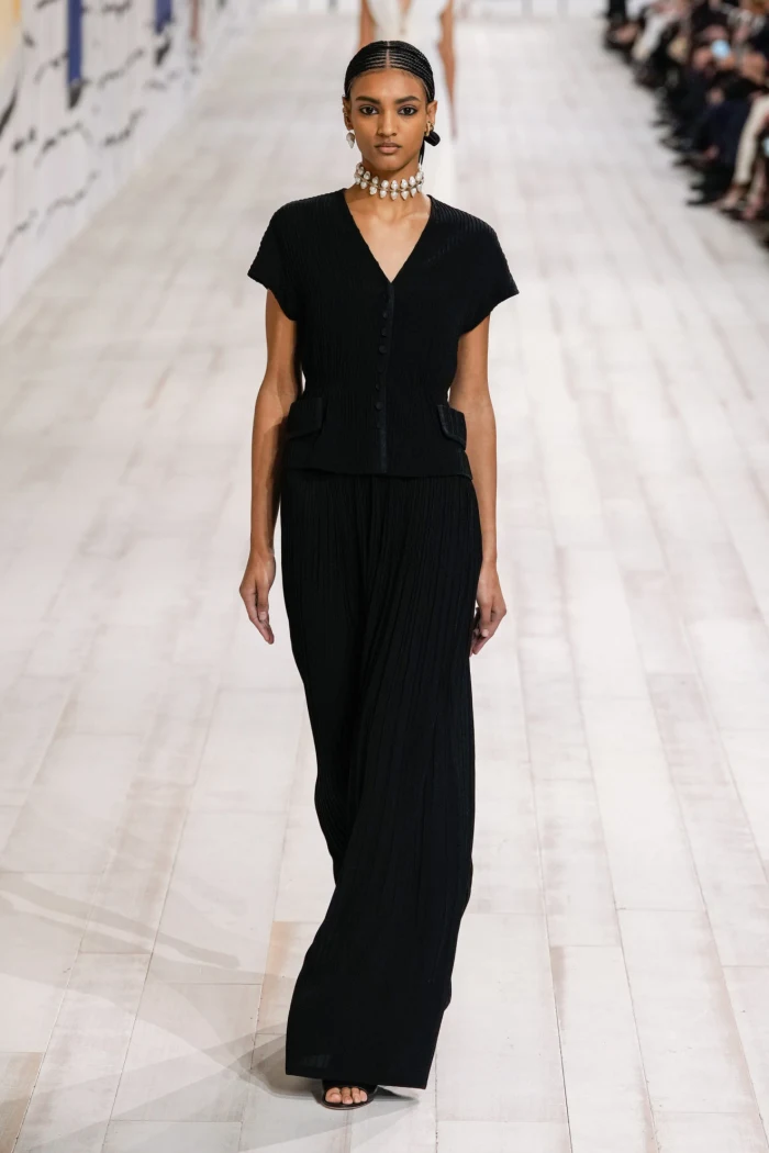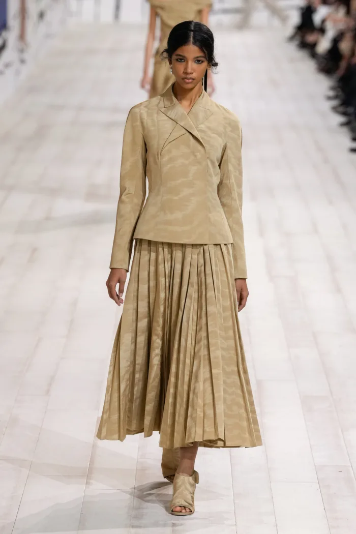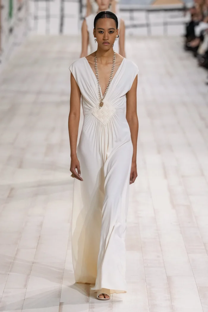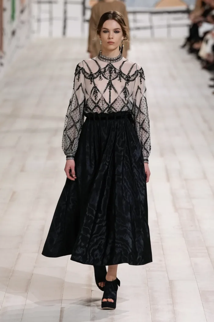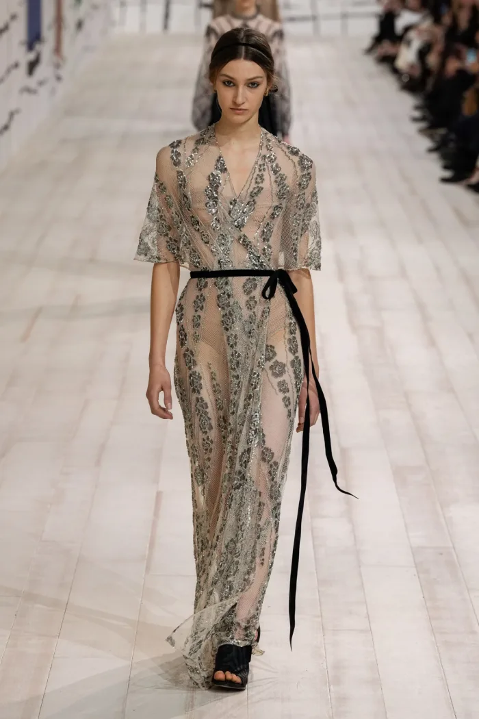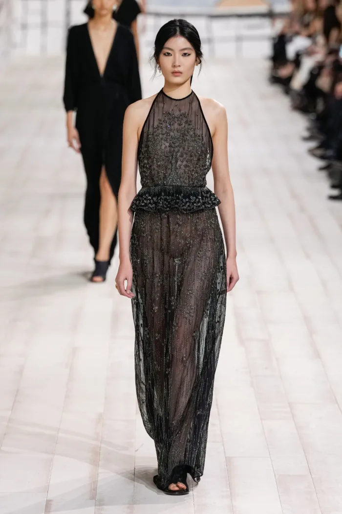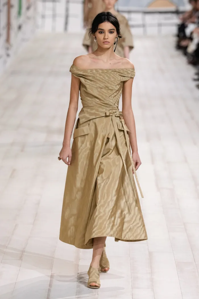 The collection opened with an unconventional, surreal experience, featuring massive dresses towering 15 feet high, amplified by the haunting sounds of Jerskin Fendrix's soundtrack for Yorgos Lanthimos's latest film, "Poor Things." But despite its otherworldly spectacle, Chiuri's collection focuses on practicality and wearability.