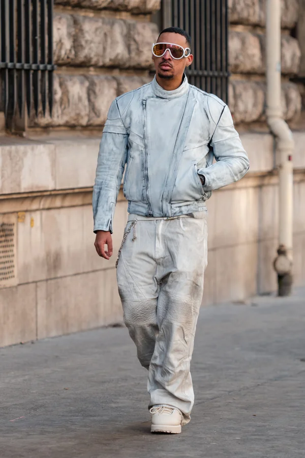 During the most recent show season, street-goers in Paris showcased their style with a mix of structured trousers, bomber jackets, and fashionable sneakers.