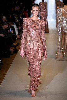 Zuhair Murad's latest collection was a departure from the traditional princess dress and bridal wear. Instead, the designer paid homage to Phoenicia, the forebear of Lebanon, and its nautical legacy. The collection featured commanding shoulders, sleek lines, fluid drapery and an abundance of shimmering accents that rivaled the glitz of his front-row attendees.